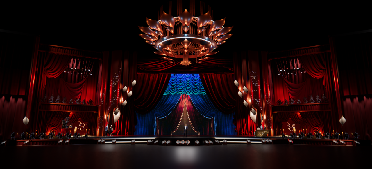 本届金鸡奖闭幕式恰逢中国电影诞生120周年的特殊历史节点,深入学习贯彻习近平总书记给田华等8位电影艺术家的重要回信精神,聚焦“场景中的新时代、作品中的新大众、光影中的新观念”,由陈道明担任艺术指导、王平久担任总策划、段嵘担任总导演,以“光影映山海,时代启新元”为主题,以“擎光而行”为核心概念,巧妙融合电影叙事手法与多空间场景化设计,打造了一场跨越时空的光影盛典。序幕《因梦而生——致敬中国电影诞生120周年》中,《定军山》激昂的京剧唱腔与锣鼓声穿透岁月,经典镜头的数字复刻让观众瞬间穿越两个甲子,感受中国电影从戏台方寸到银幕浩瀚的蜕变;歌曲《追寻》《获奖之作》用旋律串联起不同年代的电影记忆,舞蹈则以流动的生命力勾勒出电影艺术的蓬勃朝气,传统与创新在此刻达成完美共鸣。整场典礼既通过经典场景再现致敬百廿光影的精神传承,又以AI影像技术展示、XR沉浸体验等创新形式回应时代命题,生动诠释了“电影何为”的深层内涵,凸显了金鸡奖鼓励艺术创新、扎根人民生活、抒写时代气象的价值内核。