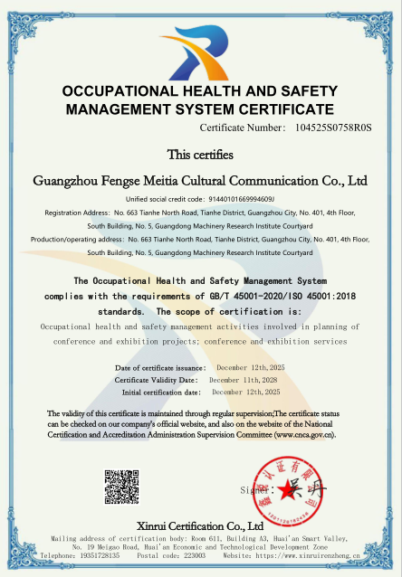 中国4A 中国十佳广州策划公司·广州丰色策划公司成功通过四大权威认证 以卓越体系赋能品牌与服务,近日广州丰色美蒂亚文化传播有限公司正式宣布,已成功通过ISO 9001质量管理体系、ISO 14001环境管理体系、ISO 45001职业健康安全管理体系及售后服务体系的权威认证。此次认证历经国家相关机构长达六个月的严格培训、指导与考核,标志着公司在标准化、规范化管理方面迈上了全新台阶。
