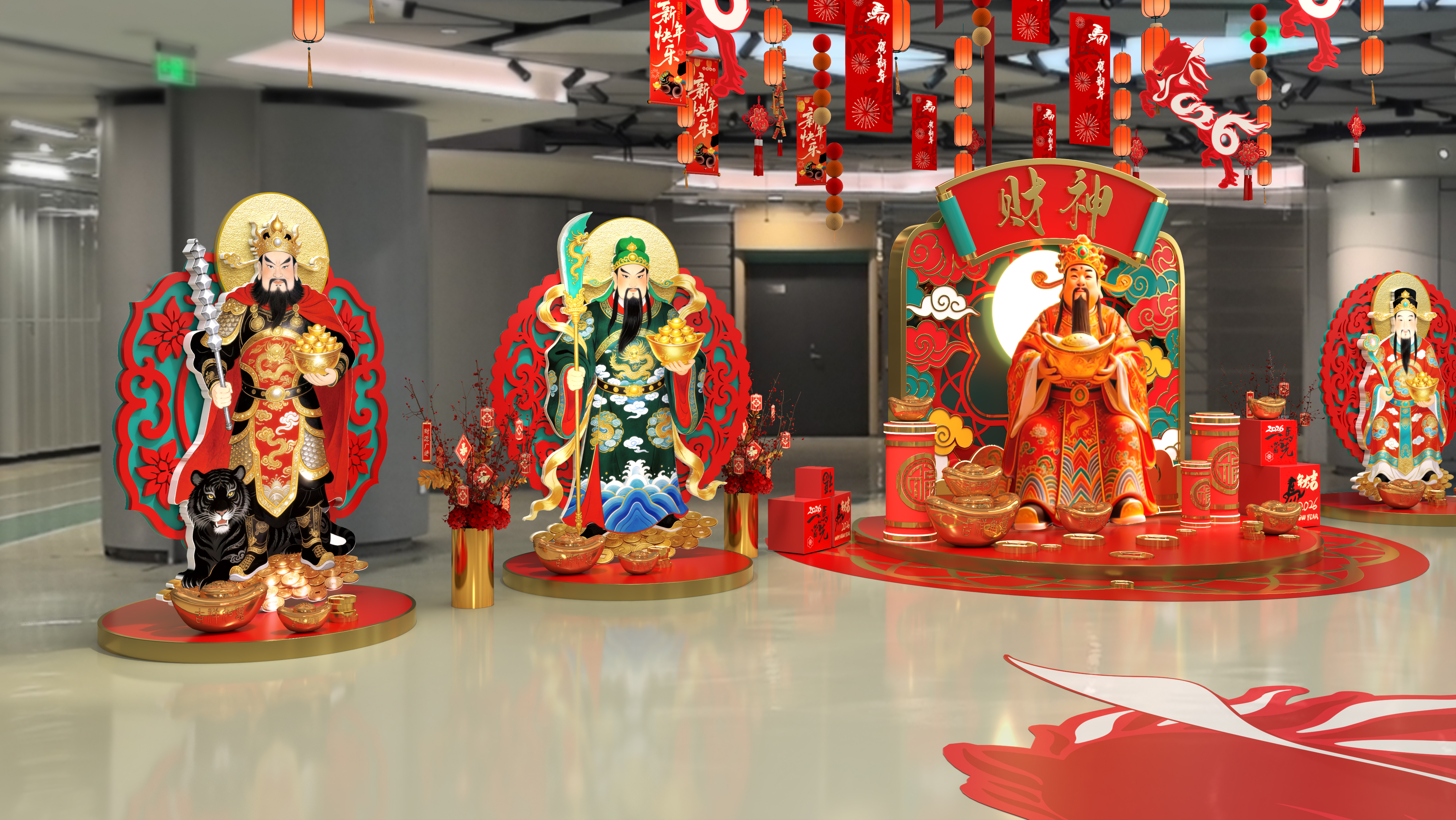 随着欢快的锣鼓声响起,美食节的又一高潮环节——“五路财神爷祷福送福活动”拉开帷幕。扮演者身着华丽服饰,手持金元宝和“招财进宝”的条幅,化身中路财神赵公明及东路、南路、西路、北路五位财神,在广场内开始巡游。他们穿梭于各个展位和人群之间,向商户和顾客派发象征财运的“金币”巧克力与福袋,所到之处,欢呼声与笑声不断,大家纷纷上前触摸财神爷的长袍,祈求新的一年财源广进、生意兴隆。